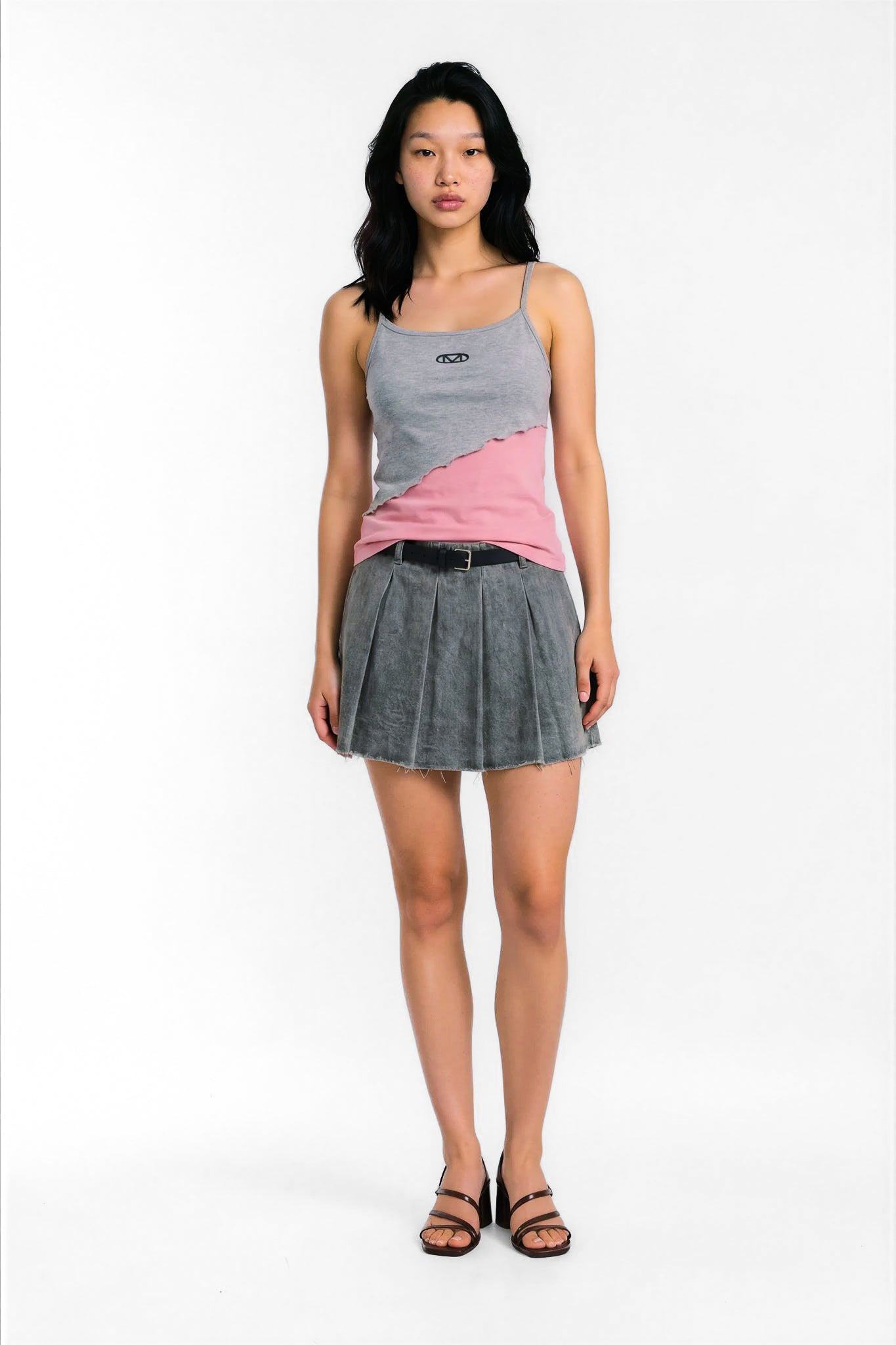 Pleated Skirt - Gray Denim
