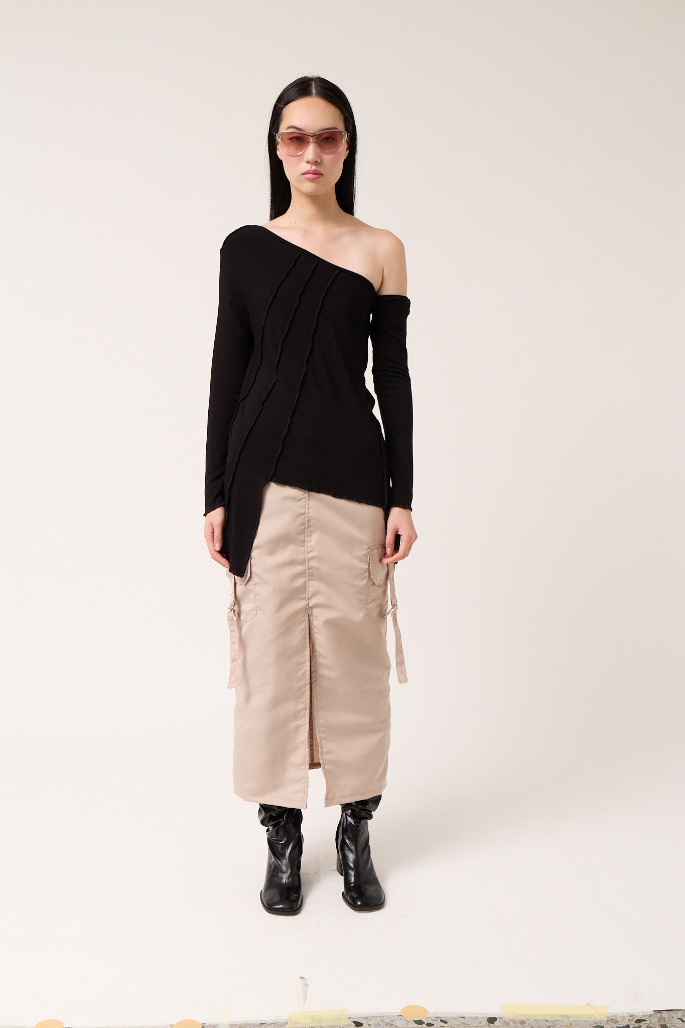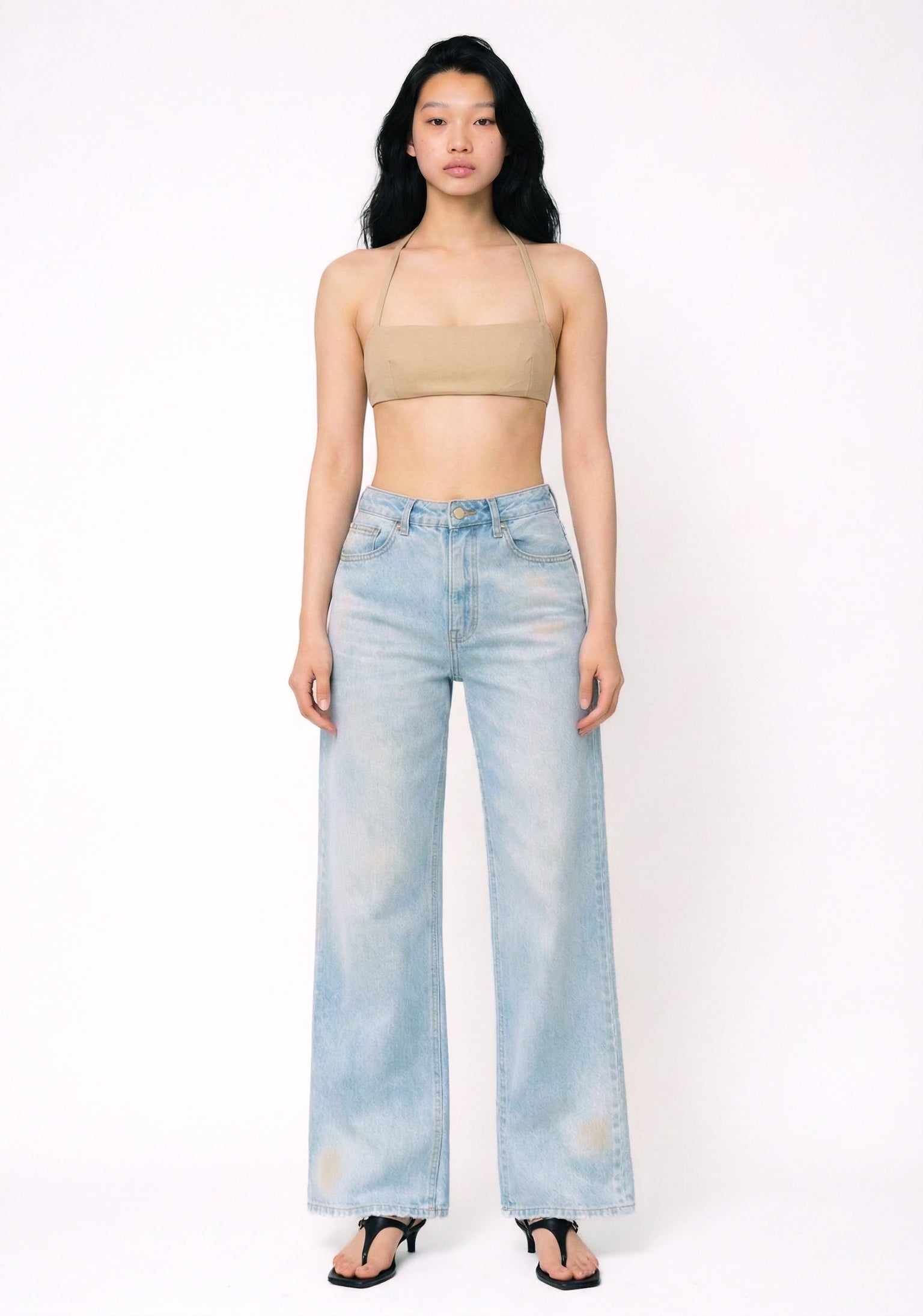 Minimal Bra-Style Top - Beige Cotton Gabardine